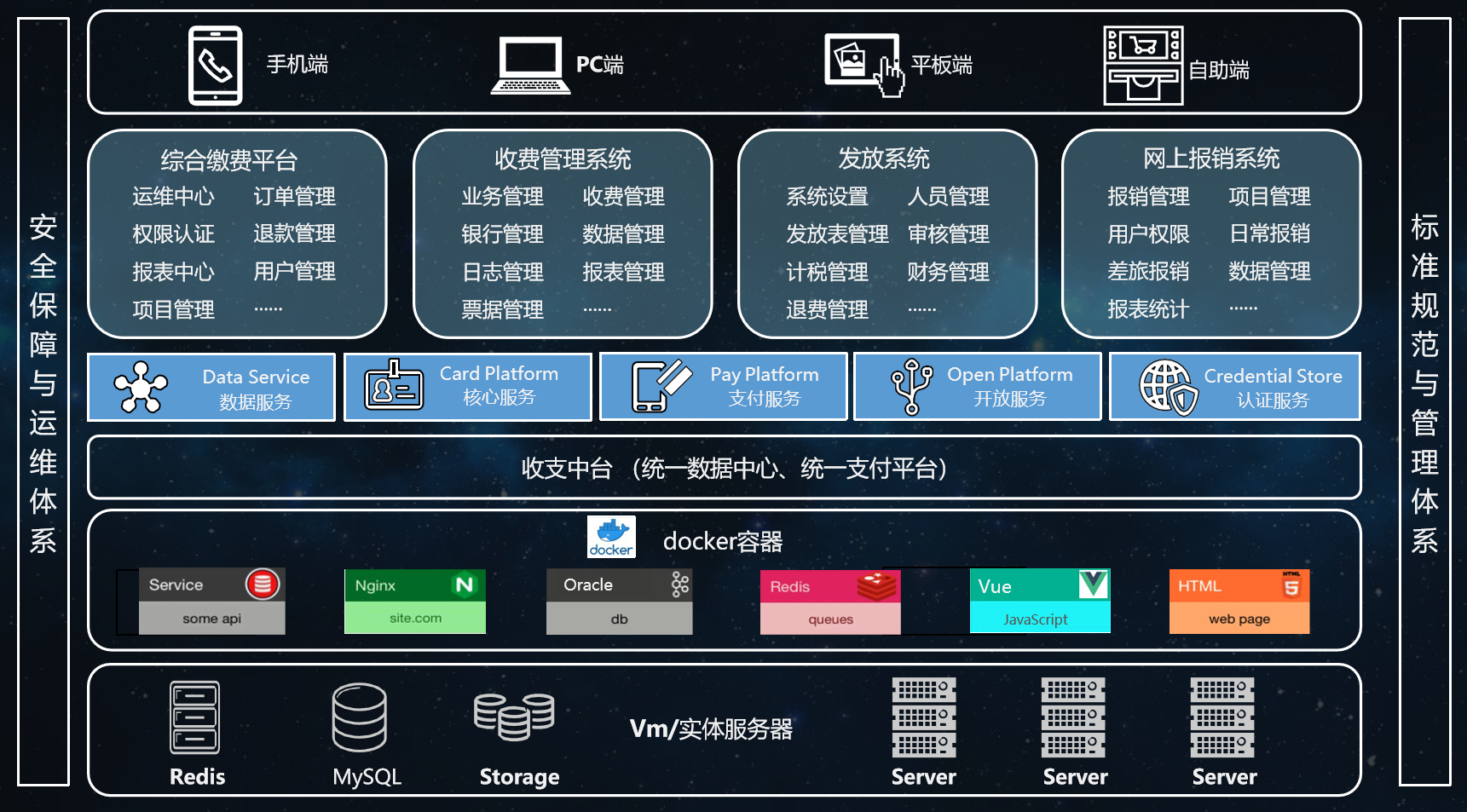通过建立高校收支全数据中心,搭建高校财务流转的业务耦合平台,对内对外实现业务和管理赋能,作为衔接框架提供系统对接、票据管理、报表统计等中台功能。平台化、模块化的架构方便用户业务拆分及扩展,助力高校业务创新,为高校提供面对未来发展变革及突发情况的应对能力,将权主控权开放给用户,打造校园业财融合建设新生态。