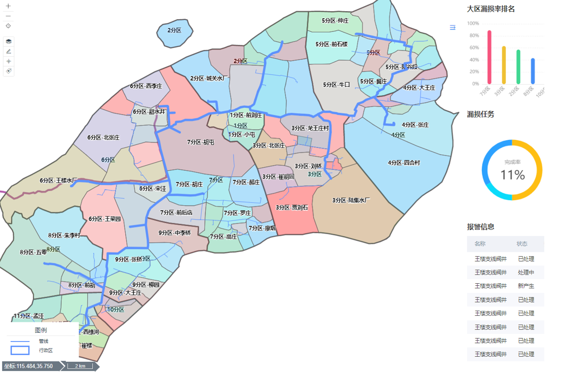 由专业的DMA规划设计人员介入,基于国际DMA分区先进理念,充分考虑DMA划分的多种影响因素,充分利旧,合理布置阀门、流量计、压力计、水质检测仪及噪声仪等设备,尽可能以最小的成本换取最大的收益。
