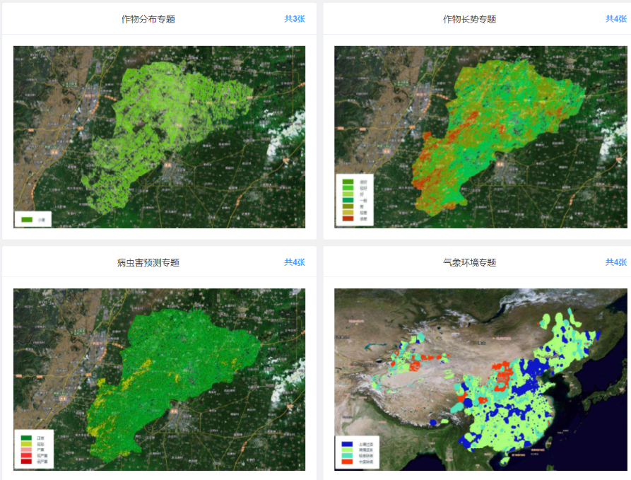 高标准农田遥感监管系统采用卫星遥感、GIS等技术,根据高标准农田集中连片特点,通过对遥感影像数据的处理、分析,来对监测目标进行智能识别和参数(墒情、长势)估算,客观地展示目标区域内的作物分布、苗情长势、土壤墒情、病虫害发生概率、气象环境等,结合极端天气预警、天气预报等数据,为管理者提供决策支持。