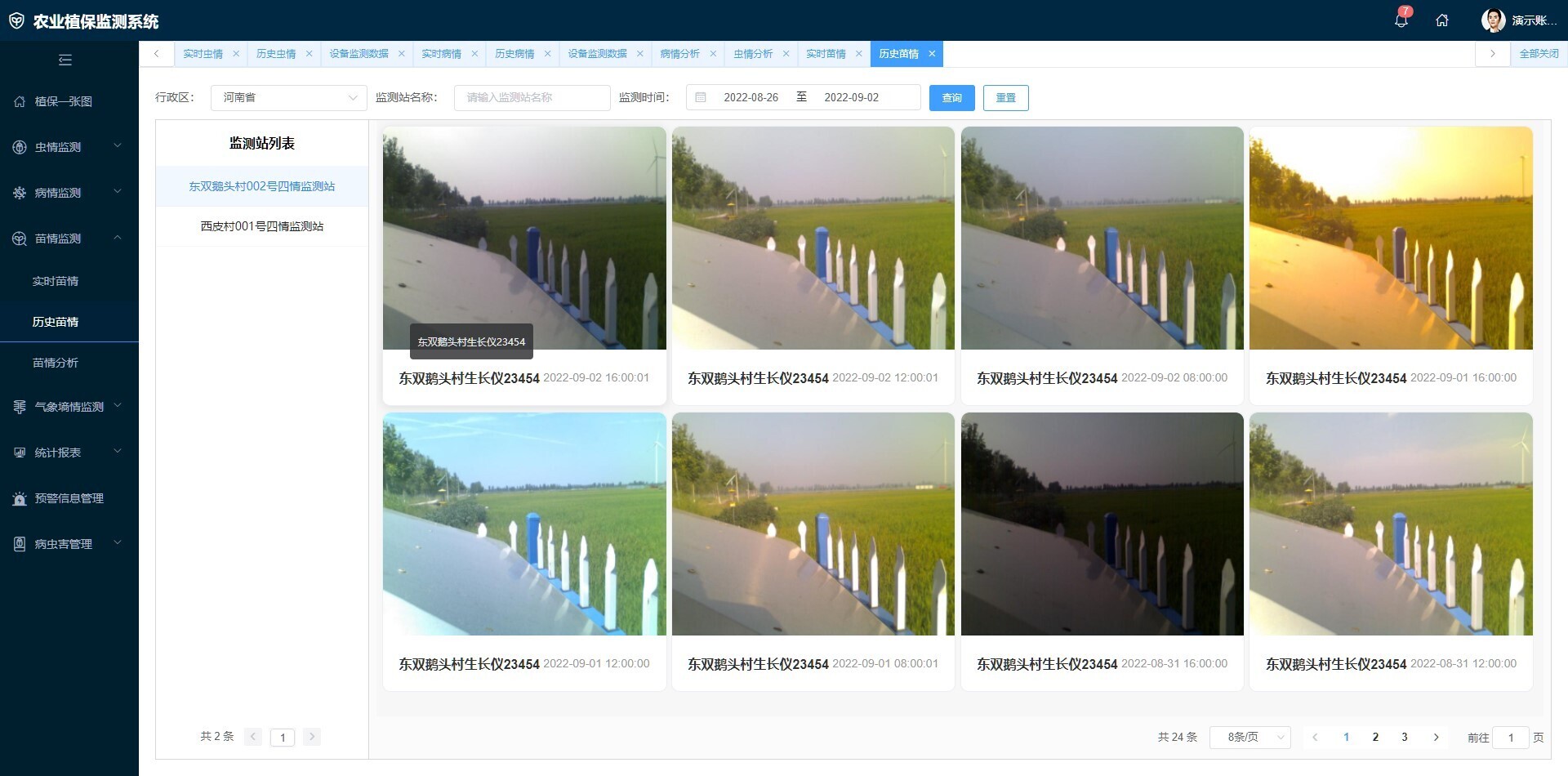 通过系统获取的病虫害信息,及时的分析病虫害种类,提前做出有效的施药方案,提高防治效果,有效控制病虫害