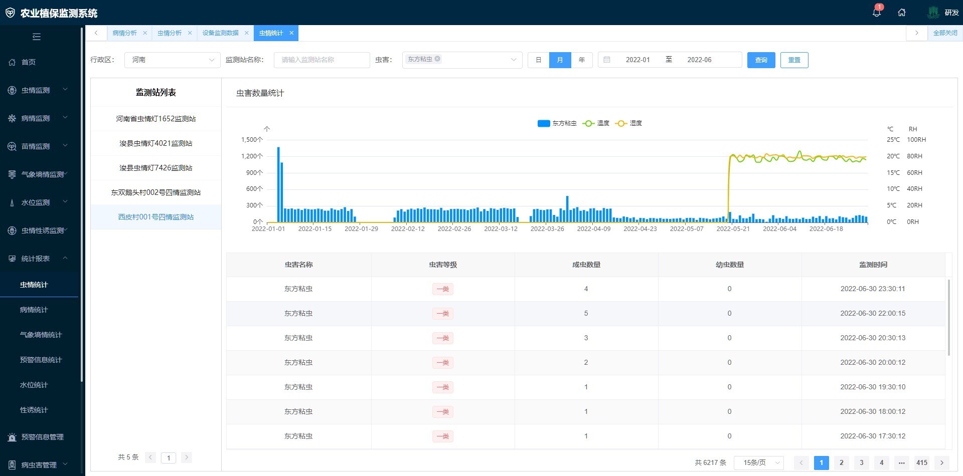 农业植保监测系统利用多种物联网设备完成农业“四情”信息的自动采集、处理和实时分析、预警,能够实时掌握田间的生长环境、作物长势、病虫害等情况,结合预警规则进行及时、有效的灾害预警和病虫害防治,保障农业生产安全。