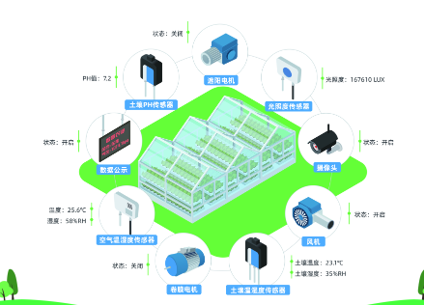 温室内的各种传感器及时监测温室内的温度、照明、土壤水分和二氧化碳浓度,并及时将数据传输到温室智能控制系统进行分析和控制,为植物生长创造了舒适的环境