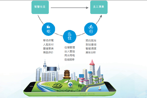 围绕企业园区职工的“吃、住、行”三个场景展开,通过为员工提供自助化、多样化的智能终端与应用,实现便捷化、人性化服务;通过对各场景数据的统计与分析,助力企业精细化管理;改变传统企业排队就餐、排队充值、人工结算、人工办理住宿、漫长等车等现象。用科技赋能,打造智慧园区美好生活,提升企业后勤服务能力和员工生活体验。